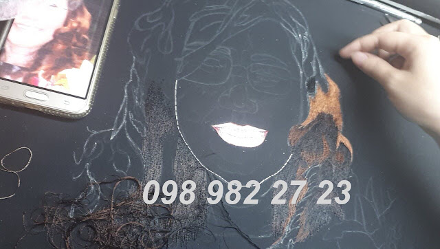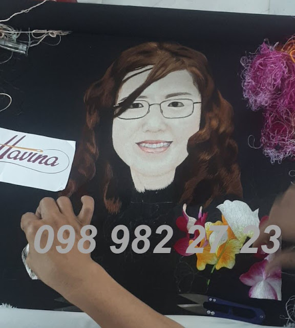 Quá trình các nghệ nhân bên mình thực hiện bức tranh thêu chân dung