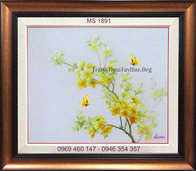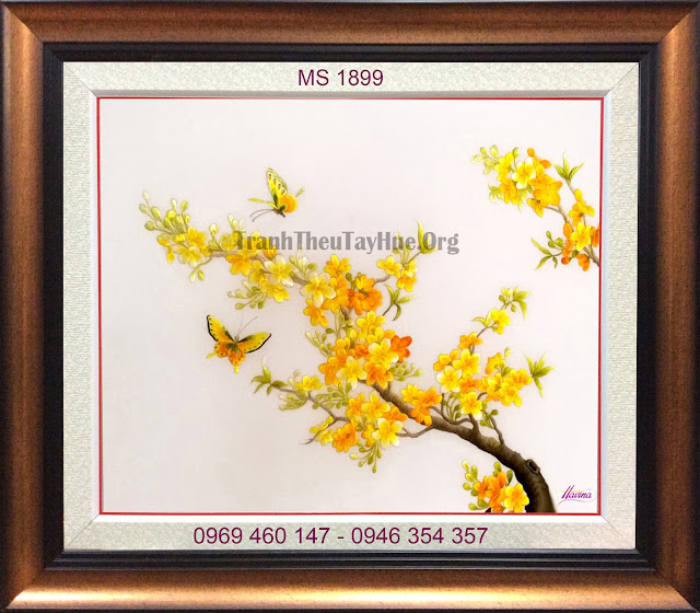 Ngoài những mẫu tranh hoa mai có sẵn, tranh thêu tay Huế nhận thêu tranh hoa mai theo yêu cầu. Mọi yêu cầu xin liên hệ:
